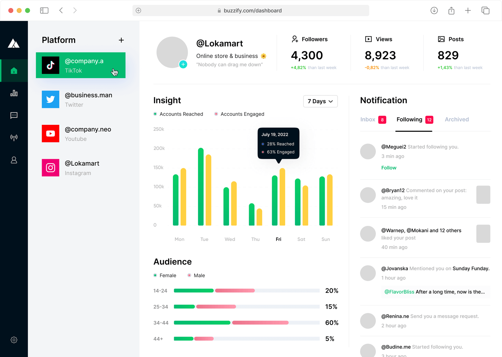Manage multiple platforms from one centralized dashboard, schedule posts efficiently, monitor interactions, and maintain consistent brand communication effortlessly.